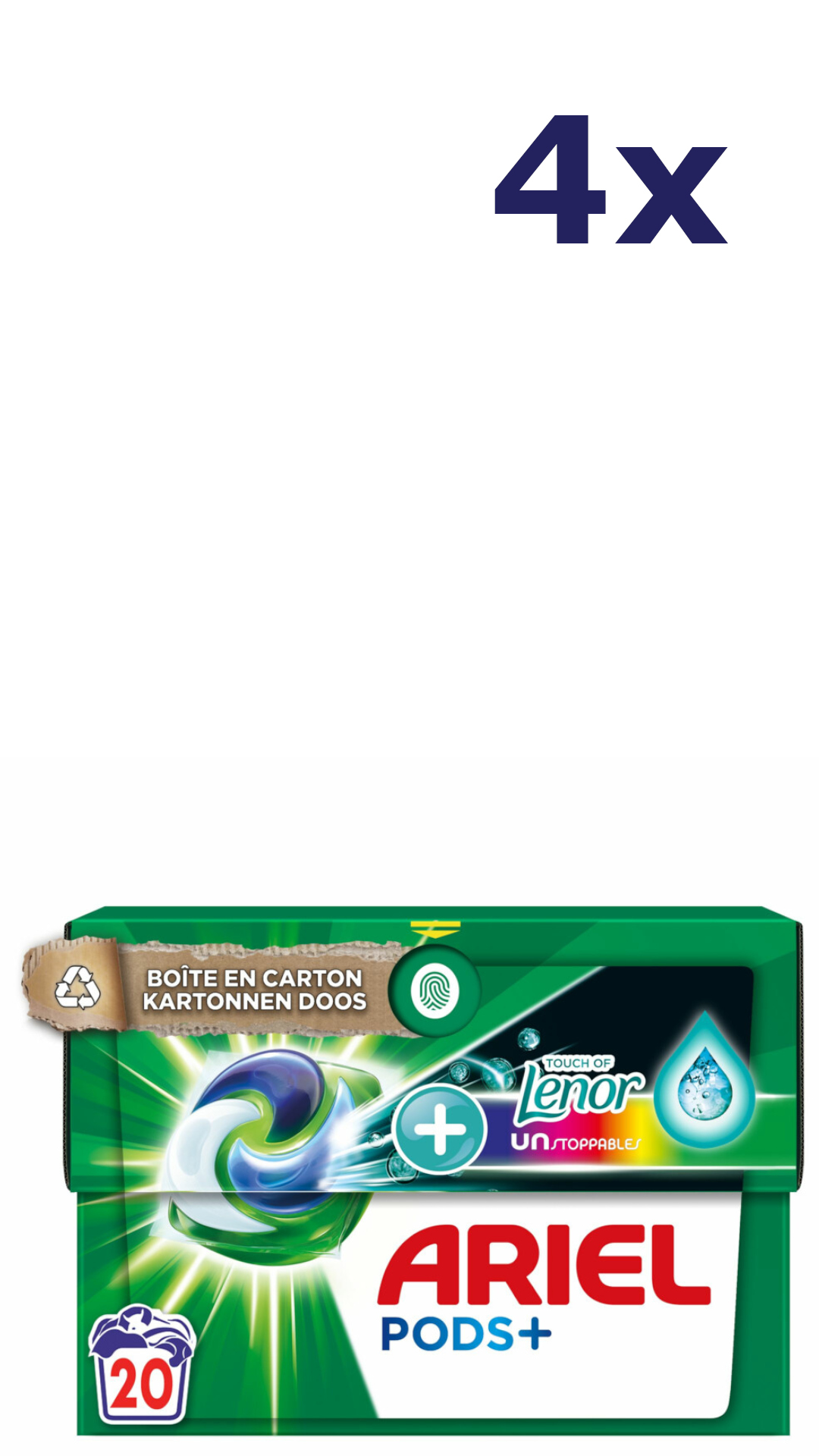 Omschrijving: 4x Ariel Pods wasmiddel Allin1 – 20sc444gr – color + lenor unstoppables