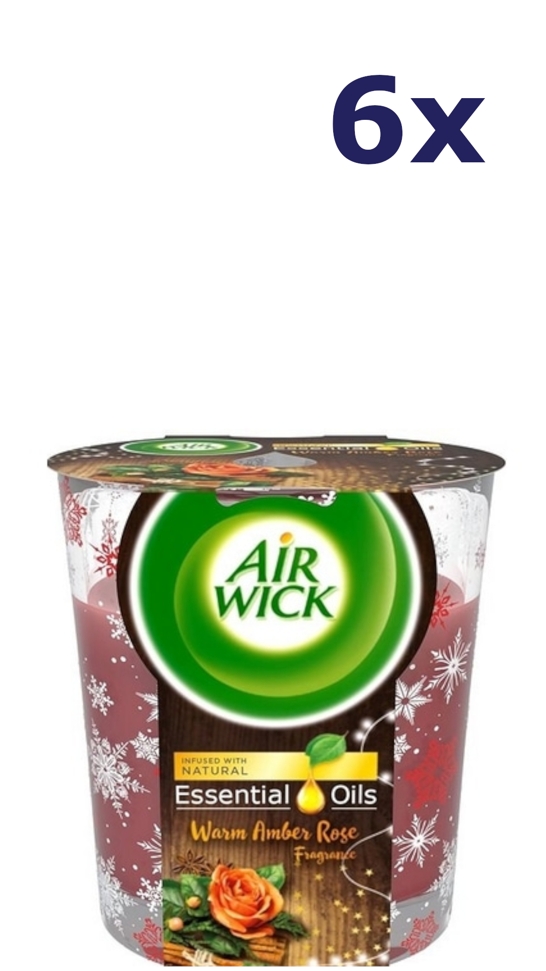 Omschrijving: 6x Airwick Geurkaars Essential Oils – Warm Amber rose 105 gr