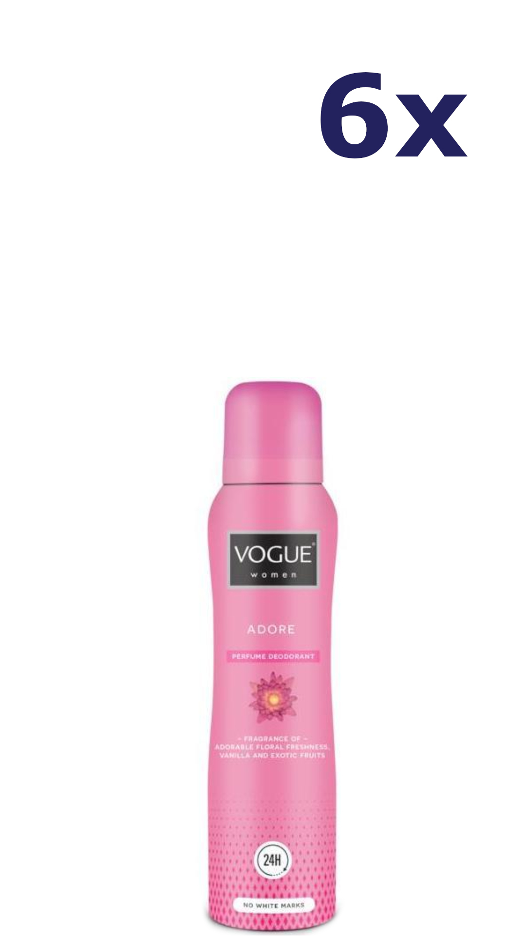 Omschrijving: 6x Vogue Deospray – Adore Parfum 150 ml