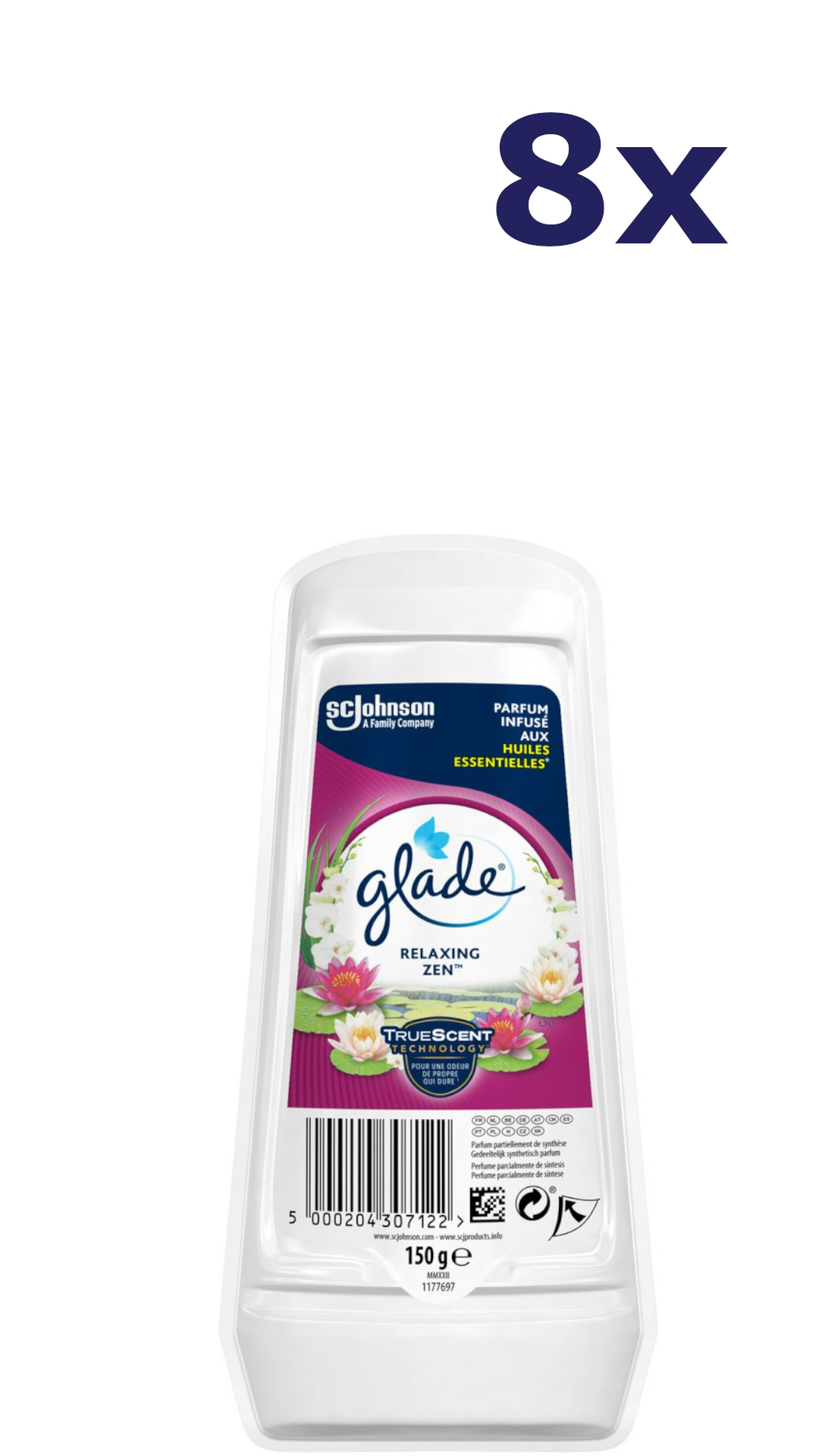 Omschrijving: 8x Glade 150gr luchtverfrisser gel relaxing zen