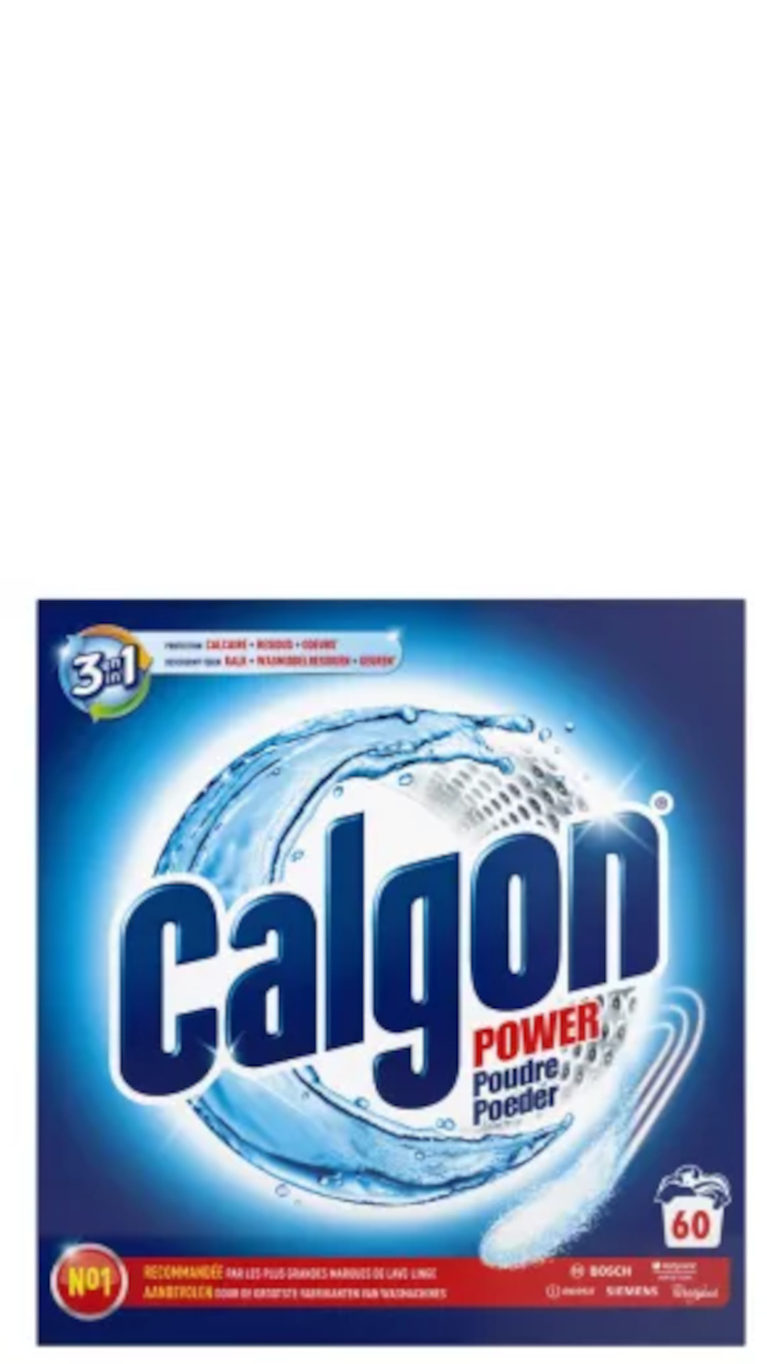 Omschrijving: Calgon 3 in 1 Power Poeder 4in1- 60sc/1,5kg Wasmachinereiniger