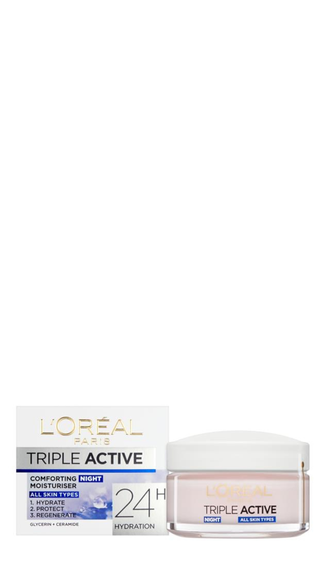 Omschrijving: L’Oreal Triple Active Moisturiser 50ml Night All Skin Types